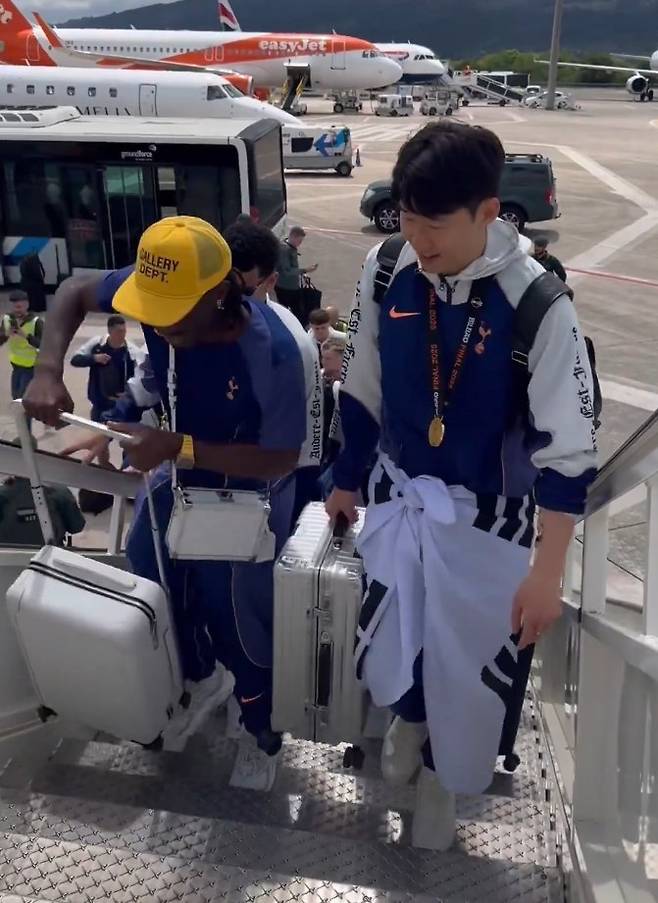 영국 매체 '스카이스포츠'는 사회관계망서비스(SNS)를 통해 토트넘 선수들이 공항으로 향하는 버스에 올라타는 영상을 게시했는데, 이때도 손흥민은 허리에 태극기를 두른 채 버스에 탑승했다.