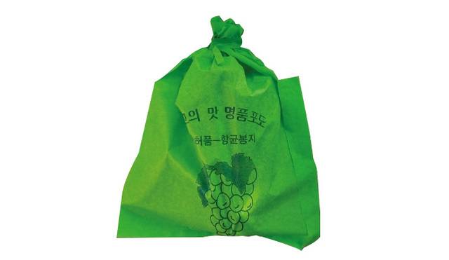 선진산업이 공급하는 샤인머스캣 포도용 봉지(사진)다. 봉지 내부에 특수물질을 코팅해 장마철 빗방울이나 습기를 차단해 잿빛곰팡이병 발생률을 낮춘다는 게 업체 측 설명이다. 선진산업 관계자는 “정희영 경북대학교 식물의학과 교수와 공동 개발해 2021년 특허 등록했다”며 “이 제품을 사용하면 10월말∼11월초 수확 후 이듬해 5월까지도 저장성이 유지된다”고 말했다. 시설재배 땐 5월 하순, 노지에선 7월 상순에 씌워주면 된다.