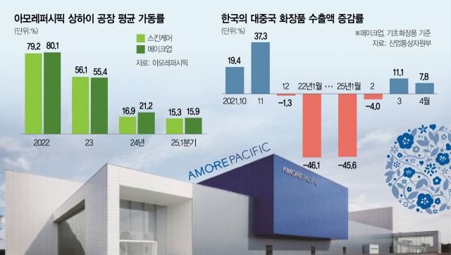 앞서 아모레퍼시픽의 상하이 공장 가동률은 최근 몇 년간 급격히 하락해왔다. 회사 사업보고서에 따르면 2022년 상하이 스킨케어 공장과 메이크업 공장의 가동률은 각각 79.2%, 80.1%에 달했지만 2023년에는 56.1%, 55.4%로 떨어졌다. 지난해에는 각각 16.9%, 21.2%까지 급감했고 올해 1분기 가동률은 각각 15.3%, 15.9%에 그치며 사실상 ‘셧다운’ 상태가 지속되고 있었다.