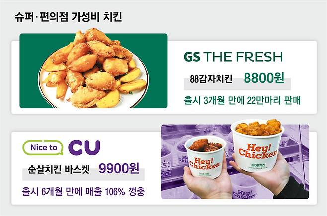 유통업계에서는 “가성비 치킨 시장 주도권이 대형마트에서 슈퍼마켓과 편의점으로 넘어오고 있다”고 분석한다.