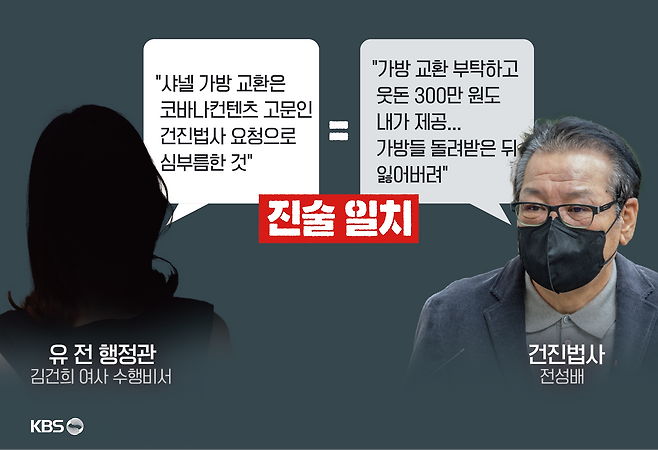 고가의 샤넬 가방을, 수행비서인 유 전 행정관이 김 여사 모르게 전 씨에게 받아 이를 두 차례나 교환해 올 수 있었겠냐는 겁니다.
