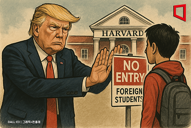 도널드 트럼프 미국 행정부가 미 최고 명문인 하버드대에 해외 유학생 등록 자격 박탈을 전격 통보했다. 이번 조치를 다른 대학으로 확대할 가능성도 시사했다. 미 대학가의 반(反)유대주의와 진보 성향을 문제 삼아 집권 2기 초부터 명문 사립대와 전쟁을 벌여 온 트럼프 대통령은 연방정부 보조금 지원 중단에 이어 외국인 유학생 등록 금지 조치까지 시행하며 전방위로 압박 수위를 높이고 있다.