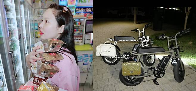 편의점 밖에는 명품 C사의 커플백이 나란히 놓여져 있는 전동 커플 바이크가 준비되어 있었다.