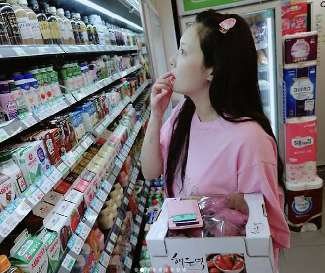 22일 현아는 자신의 계정에 편의점에서 진지하게 간식거리를 사는 모습을 공개하고 남다른 커플 아이템을 공유했다.