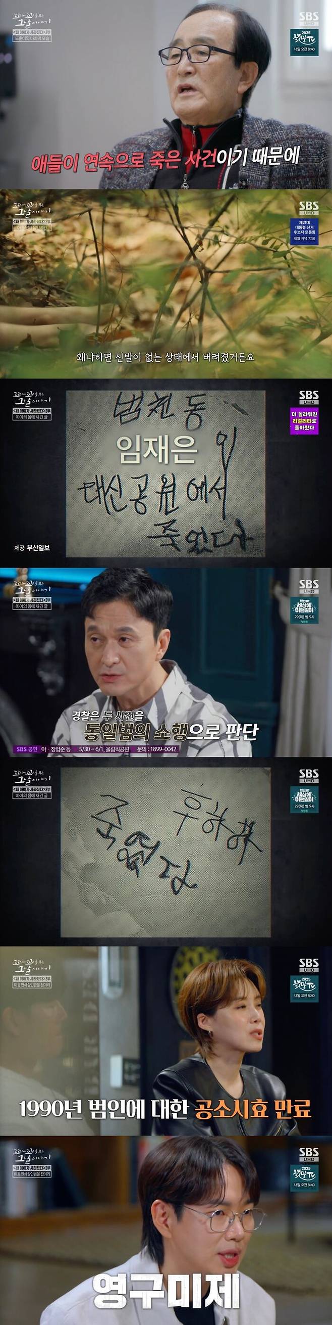 22일 방송된 SBS '꼬리에 꼬리를 무는 그날 이야기'(이하 '꼬꼬무')에서는 '후하하 죽였다 - 범인의 메시지'라는 부제로 1970년대 부산에서 일어난 아동 연쇄 살인 사건을 추적했다.