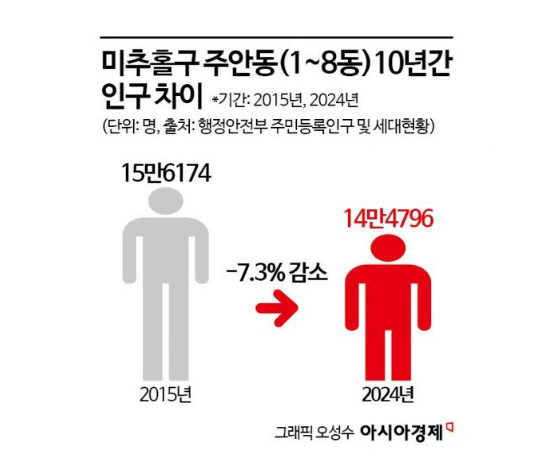 주안동의 주민들은 빈집이 급증한 원인으로 인구 감소를 꼽았다. 행정안전부 주민등록인구 현황에 따르면 2015년 15만6174명이었던 주안동(1~8동)의 인구는 지난해 14만4796명으로 7.3% 감소했다. 주안동에서 30년째 거주 중인 김모씨(75)는 "젊은 사람들이 인천 외곽으로 빠져나가 노인들만 남았다"며 "마을 주민들의 평균 연령대가 70~80대"라고 말했다.