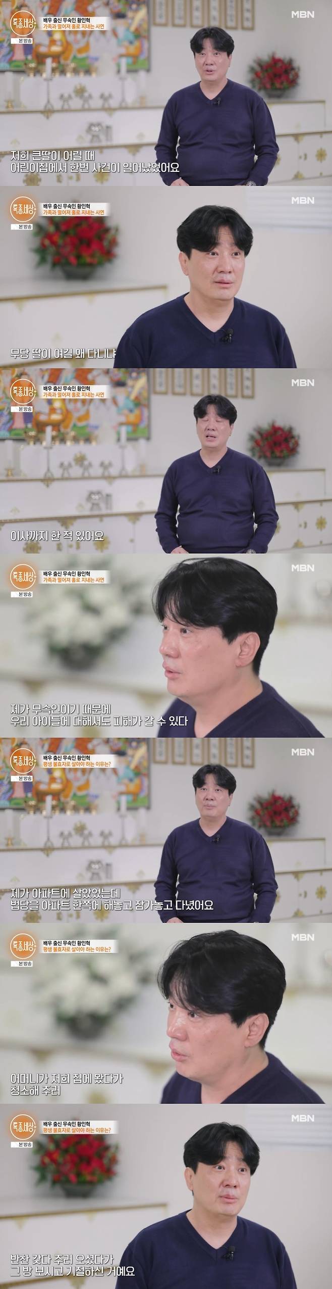 황인혁은 "큰딸이 어렸을 때 어린이집에서 사건이 터졌다. (사람들이) '무당 딸이 여기 왜 다니냐, 못 다니게 해달라'라고 하고. 소문이 나서 난리가 났었다. 이사까지 한 적도 있다"라고 말했다.