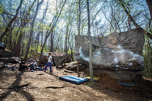볼더링장 초입에 위치한 댑볼더는 알짜바위다. 나무로 둘러싸인 큰 덩어리의 바위에 10개가 넘는 문제가 있다.