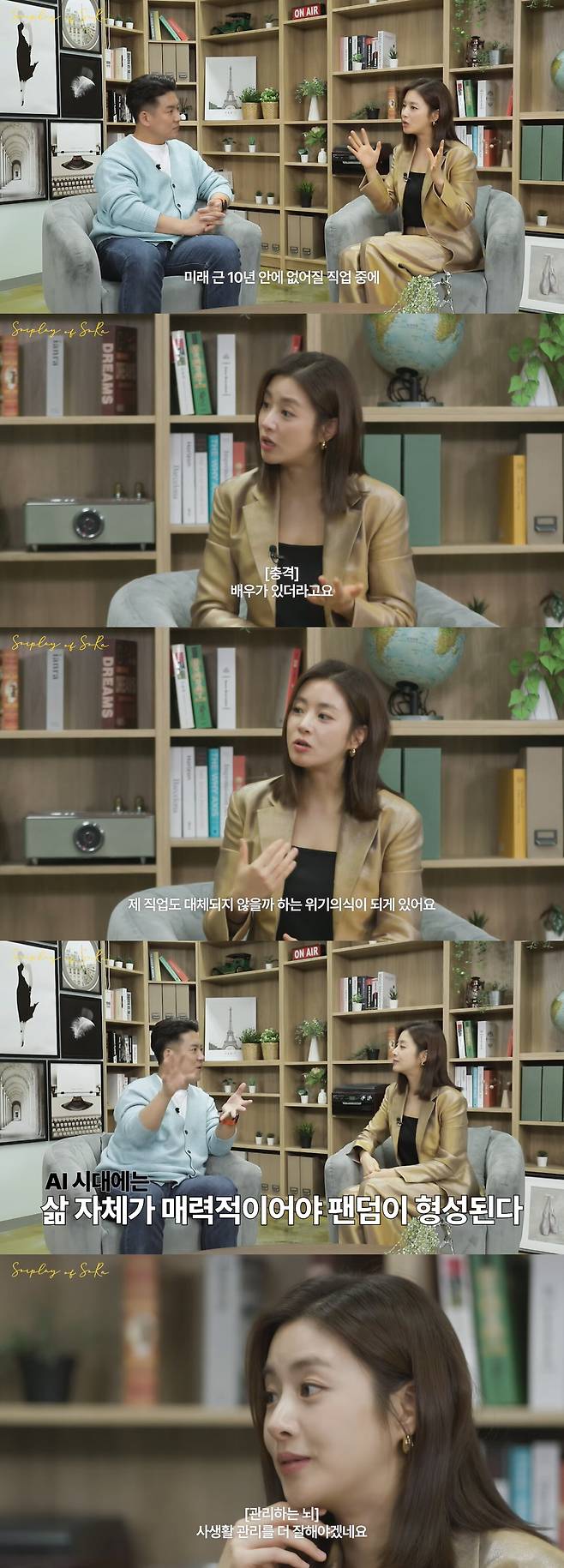 배우 강소라가 하루가 다르게 발전하는 인공지능(AI) 기술로 인해, 배우라는 직업이 사라지면 어쩌나 우려를 전했다.