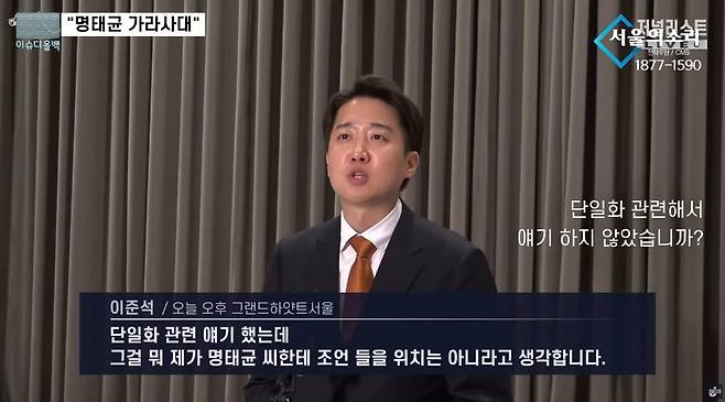 이 후보는 기자가 "단일화 관련해서 얘기하지 않았느냐"고 묻자 "단일화 관련한 얘기도 했는데, 제가 명태균씨한테 조언 들을 위치는 아니라고 생각한다"고 말했습니다. 그는 명씨와 "길게 통화하지 않았다. 1분도 안 한 거 같다"라며 "제가 뭐 그걸 시간을 재보지는 않았지만 뭐 단일화에 대해서 그분이 무슨 생각을 갖고 있든지 제 입장이 하나도 변한 게 없지 않습니까?"라고 말했습니다.
