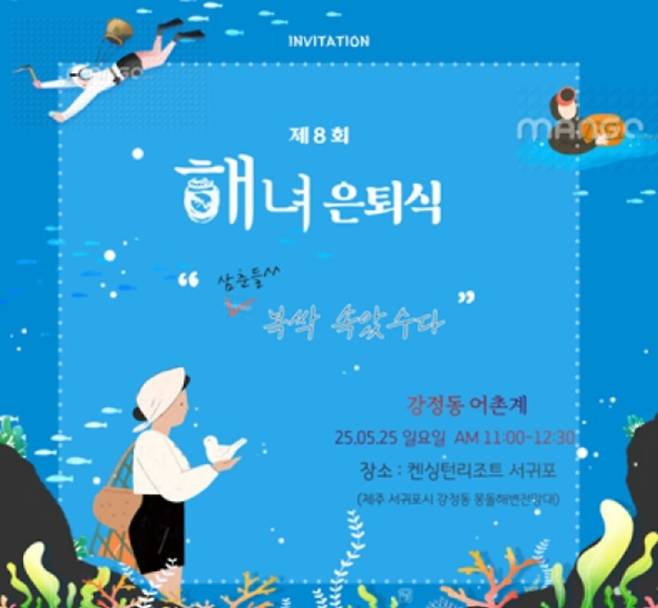 오는 25일 오전 11시, 제8회 해녀 은퇴식이 켄싱턴리조트 서귀포의 몽돌해변 전망대에서 열립니다.