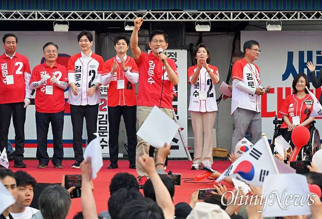 | ▲ 김문수 국민의힘 대선 후보가 22일 오후 경기도 부천에서 열린 “김문수를 키운 부천” 집중유세에서 시민들에게 지지를 호소하고 있다. |