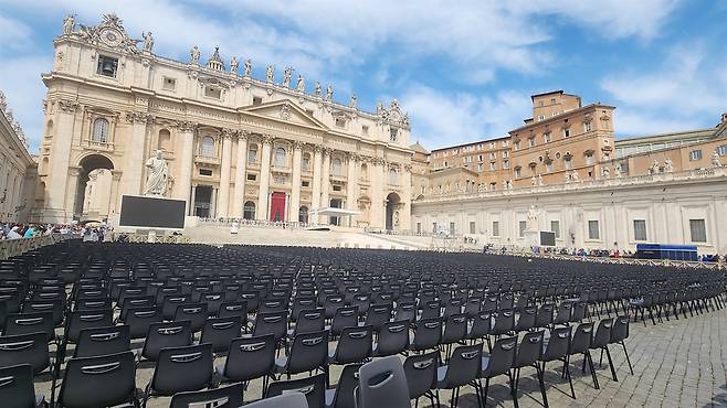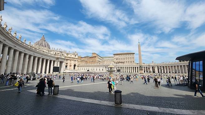 | ▲ 바티칸 성 베드로 대성당 앞 광장 2025년 가톨릭 정기 희년을 맞이하여 세계 각국에서 많은 순례자들이 방문하여 성당 안과 밖이 모두 붐볐다. |