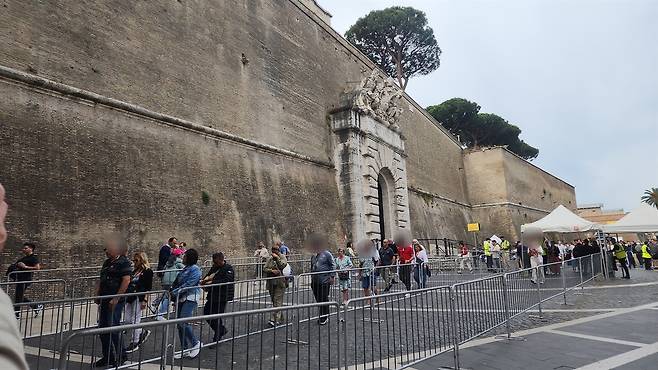 | ▲ 바티칸 박물관 입장을 위해 기다리는 방문객들 박물관은 오전 8시부터 입장인데 우리 팀은 2시간 전부터 줄 서서 기다렸다. |