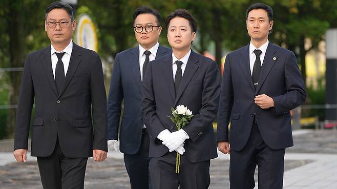 이 후보는 오늘(23일) 오전 노 전 대통령 서거 16주기를 맞아 경남 김해 봉하마을 묘역을 참배한 뒤 "3당 합당을 하자는 주변의 이야기가 있을 때 주먹을 불끈 쥐고 '이의 있습니다' 외치던 노무현 대통령의 모습을 닮은 정치를 하고 싶다"고 말했습니다.