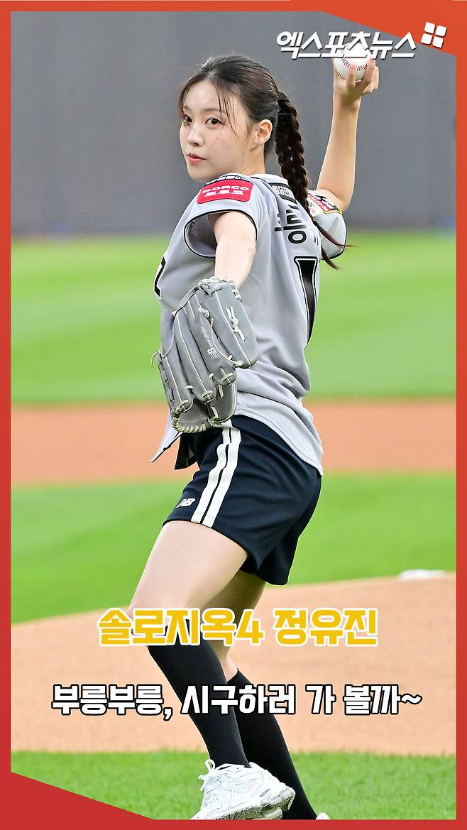 (엑스포츠뉴스 수원, 김한준 기자) 22일 오후 수원KT위즈파크에서 열린 '2025 신한 SOL Bank KBO리그' KIA 타이거즈와 KT 위즈의 경기, 경기 전 솔로지옥4 정유진이 시구에 임하고 있다.