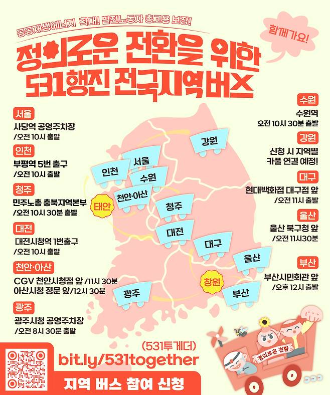 | ▲ 정의로운 전환을 위한 531행진 전국지역 버스 안내 포스터. |