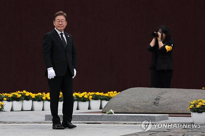 노무현 전 대통령 묘역 참배 마친 이재명 후보