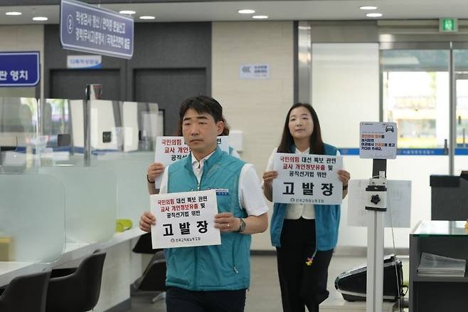 | ▲ 전국교직원노동조합이 개인정보보호법 위반과 공직선거법 위반 협의로 서울 영등포경찰서에 국민의힘을 고발했다. |