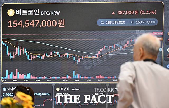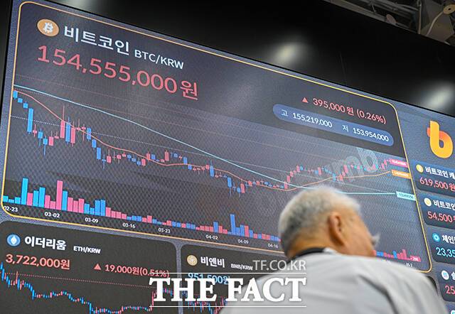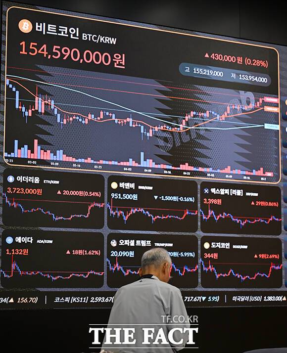 [더팩트ㅣ장윤석 기자] 가상화폐 비트코인이 사상 최초로 11만 달러를 넘어선 23일 오전 서울 서초구 빗썸라운지 강남본점 전광판에 비트코인 시세가 표시돼 있다.