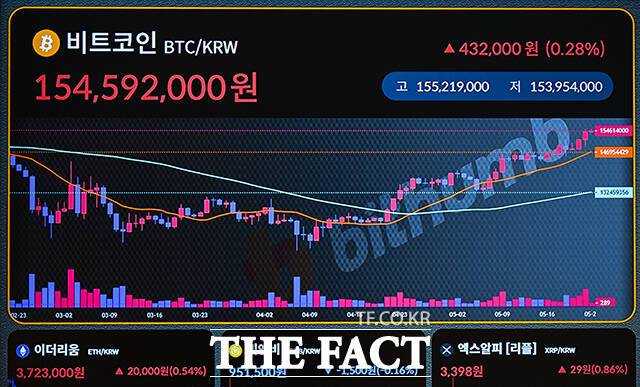 국내거래소인 업비트와 빗썸에서는 1억 5400만 원 대선을 유지하고 있다.