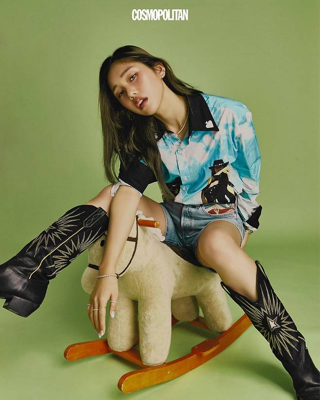 패션/라이프스타일 매거진 〈코스모폴리탄〉이 미미와 함께한 화보를 공개했다. 〈코스모폴리탄〉의 슬로건 ‘FUN FEARLESS FEMALE’의 캠페인 화보, 이번 6월호의 주인공은 오마이걸 활동부터 예능 프로그램 〈식스센스 : 시티투어〉, 〈뿅뿅 지구오락실 3〉에 이르기까지, 자신만의 영역을 개척해나가는 미미다. ‘카우걸’ 콘셉트로 진행한 이번 화보, 미미는 특유의 재기발랄함과 사랑스러운 포즈를 유감 없이 펼치며 독보적인 화보 컷을 완성했다.