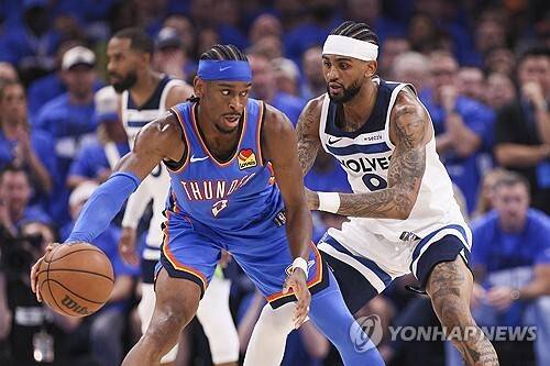 오클라호마시티 썬더는 23일(한국시간) 미국 오클라호마주 오클라호마시티 페이컴 센터에서 열린 NBA 2024-2025시즌 미네소타 텀버울브스와의 서부 컨퍼런스 파이널 2차전에서 118-103으로 승리했다.