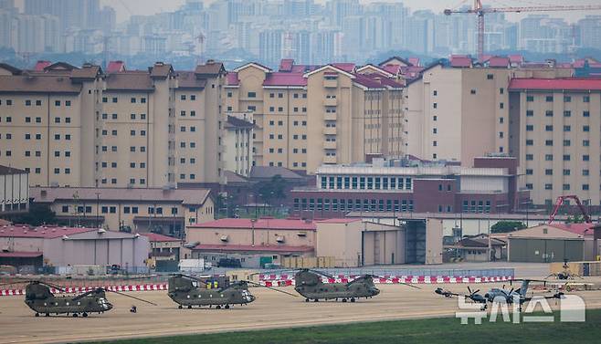 [평택=뉴시스] 정병혁 기자 = 23일 경기 평택시 캠프 험프리스에서 RC-12X 가드레일 정찰기가 이륙하고 있다. 도널드 트럼프 미국 행정부가 주한미군 수천명을 감축하는 방안을 논의 중이라고 현지언론이 보도했다.