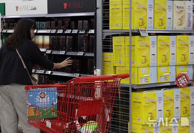 [서울=뉴시스] 조수정 기자 = 23일 서울 시내 한 대형마트에서 소비자들이 동서식품 인스턴트 커피를 고르고 있다.