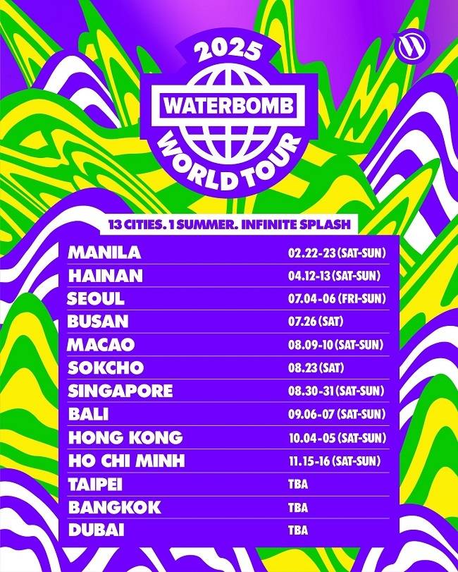 여름 대표 뮤직 페스티벌 워터밤(WATERBOMB)이 2025년 본격적인 월드투어확장에 나서며 서울, 부산, 속초를 포함한 국내외 총 13개 도시에서 개최를 확정했다.