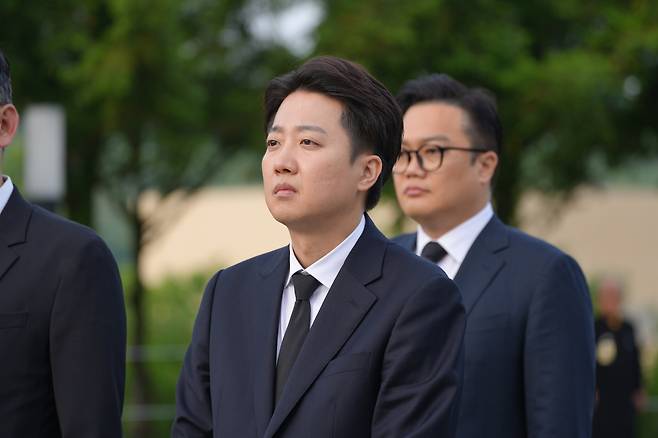 이날 오전 별도로 노 전 대통령 묘소를 참배한 이준석 후보는 잠시 눈물을 보이기도 했다. 기자들과 만난 그는 "이번 대통령 선거를 치르면서 제가 노무현 대통령과 같은 소신 있는 정치를 하겠다는 이야기를 꾸준히 해왔다"라며 "실제로 제가 드러내어 더 밝히지는 않았지만, 고등학교를 다니던 시절 저희 바로 옆에 혜화동에서 자택에 계셨고, 대통령 당선되셨을 때도 굉장히 주변에서 많이, 노무현 대통령님을 기대하고 응원했던 기억이 있다"라고 밝혔다.