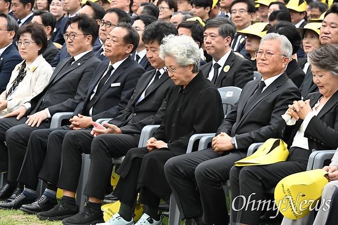 고 노무현 대통령 서거 16주기 추도식이 23일 오후 김해 봉하마을 묘역에서 엄수됐다. 권양숙 여사와 문재인 전 대통령, 우원식 국회의장 등이 참석했다. 카메라에 잡힌 추도식 사진이다.