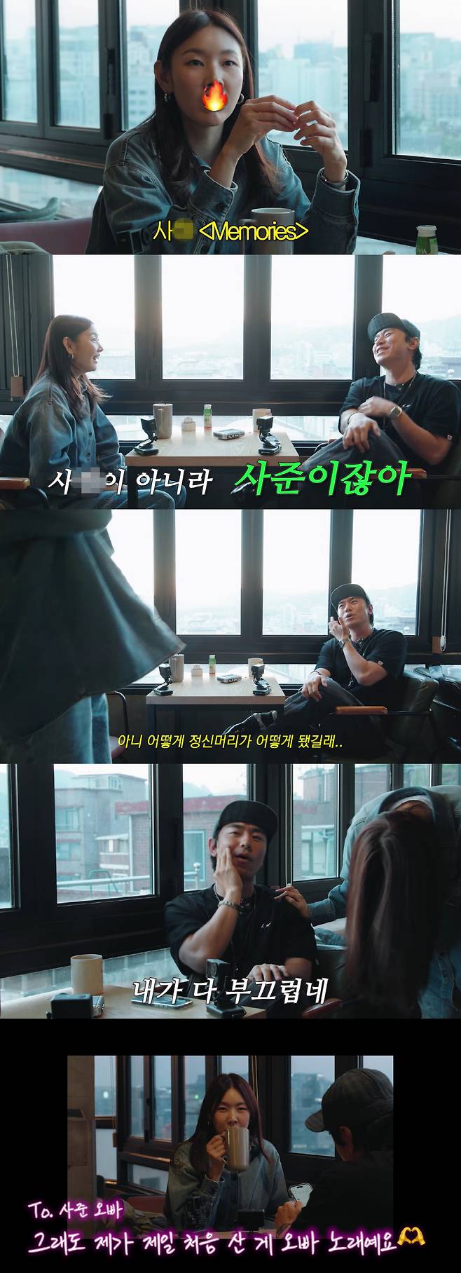 하지만 여기서 문제의 말실수가 나왔다. 실제로는 가수 사준을 언급하려다 '사정'이라고 잘못 말한 것. 해당 부분은 영상에서 묵음 처리됐지만, 함께 있던 이시언은 곧바로 "멍청아, 사정이 아니라 사준이야"라고 정정하며 "사람 이름이 어떻게 사정이냐"고 황당해했다.