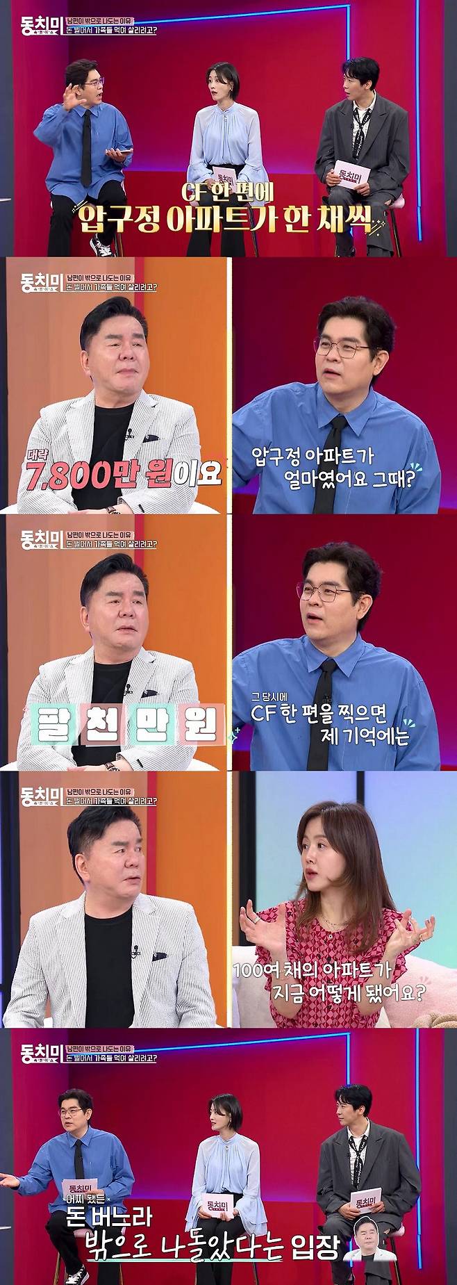 "한때 큰돈을 벌었다"는 심형래는 전성기 시절 엄청난 수입을 올렸던 이야기도 공개해 놀라움을 안겼다. "그 당시 찍었던 CF광고만 100편 이상, 출연한 영화만 118편"이라고 밝힌 심형래는 "당시 압구정 아파트 한 채가 7천8백만 원이었는데, 한 편 찍을 때마다 8천만 원을 받았다"고 덧붙여 모두의 입을 다물지 못하게 만들었다. 이를 듣던 MC 김용만이 "CF광고 한 편에 압구정 아파트 한 채씩 수입이 있었던 것"이라고 정리하자, 스튜디오에선 "100여 채의 아파트가 지금 다 어떻게 됐느냐"는 질문 공세가 이어졌고 심형래는 "잇따른 사업 실패로 벌었던 많은 돈을 다 날렸다"고 털어놔 충격을 안겼다.