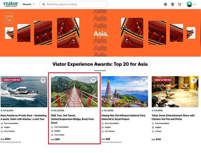 아시아 유명 여행지, 여행상품과 경쟁한 가운데, (주)피엘케이 트래블의 DMZ 투어 상품의 성과가 돋보였다. 특히 글로벌 관광객의 리뷰 1만2568개를 받으면서, 평점 5.0(5.0 만점 기준)를 유지하는 우수성이 선정의 이유였다.