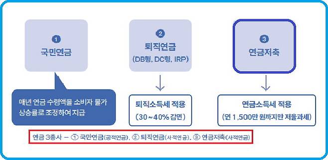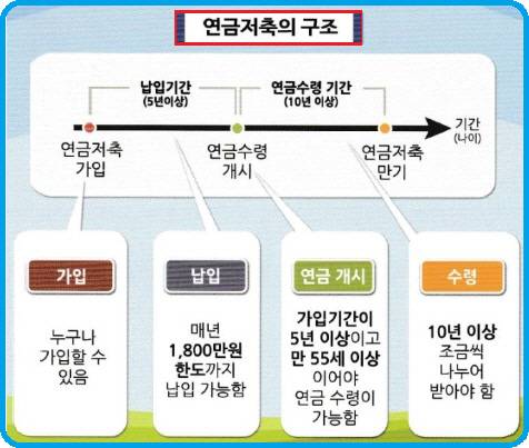 연금저축계좌란 일정기간 납입 후 연금형태로 인출할 경우 낮은 연금세율로 과세되는 세금혜택을 주는 금융상품 계좌를 말한다. 연금저축계좌에는 연금저축펀드(ETF포함), 연금저축보험, 연금저축신탁이 있다. 연금계좌는 연간 1800만원의 납입한도가 있다. 전 금융기관 합산한도이고, 분기별 한도제한은 없다. 연간 납입한도는 연금저축계좌와 퇴직연금 DC/IRP가입자 납입 분을 합산한 개념이다.