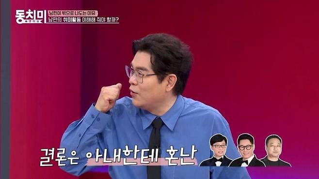 그러나 MC 김용만이 "결혼과 동시에 취미를 싹둑 자를 수 있느냐?"라며 반박해 남성 출연자들의 공감을 자아낸다.