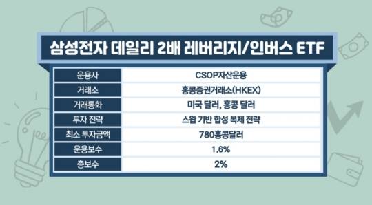 레버리지뿐 아니라 인버스 ETF 등 고위험 ETF에 대한 국내 투자자들의 관심이 뜨거운 가운데 삼성전자 한 종목만 담은 ETF가 홍콩 증시에 상장될 예정인데요. 바로 '삼성전자 데일리 2배 레버리지', '삼성전자 데일리 -2배 인버스 ETF'입니다.