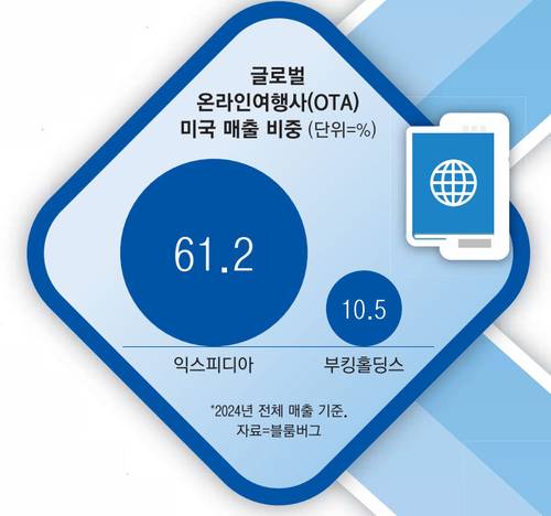 익스피디아는 사정이 더 안 좋았다. 미국에 편중된 사업구조 탓에 같은 기간 익스피디아는 순이익 기준 4150만달러의 적자를 봤다. 올해 들어 주가 역시 부킹홀딩스 주가는 오르고 익스피디아는 하락세다. 여기엔 지역별 비중이 큰 영향을 줬다는 분석이다.