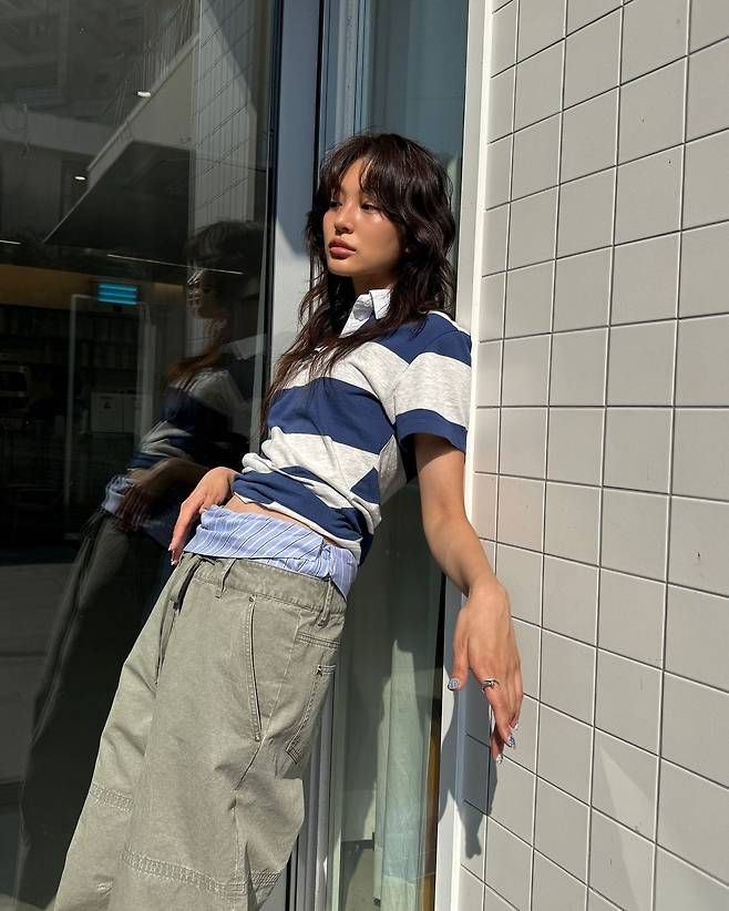 조금 더 과감하고 힙하게 카고 바지를 소화하고 싶다면 패션 컨텐츠 크리에이터 우영 처럼 팬츠 안에 트렁크 쇼츠를 입거나 허리에 스카프를 둘러 새로운 시도를 해보세요. 럭비 티셔츠로 발랄함을 강조하면 힙한 무드가 배로 살아납니다.