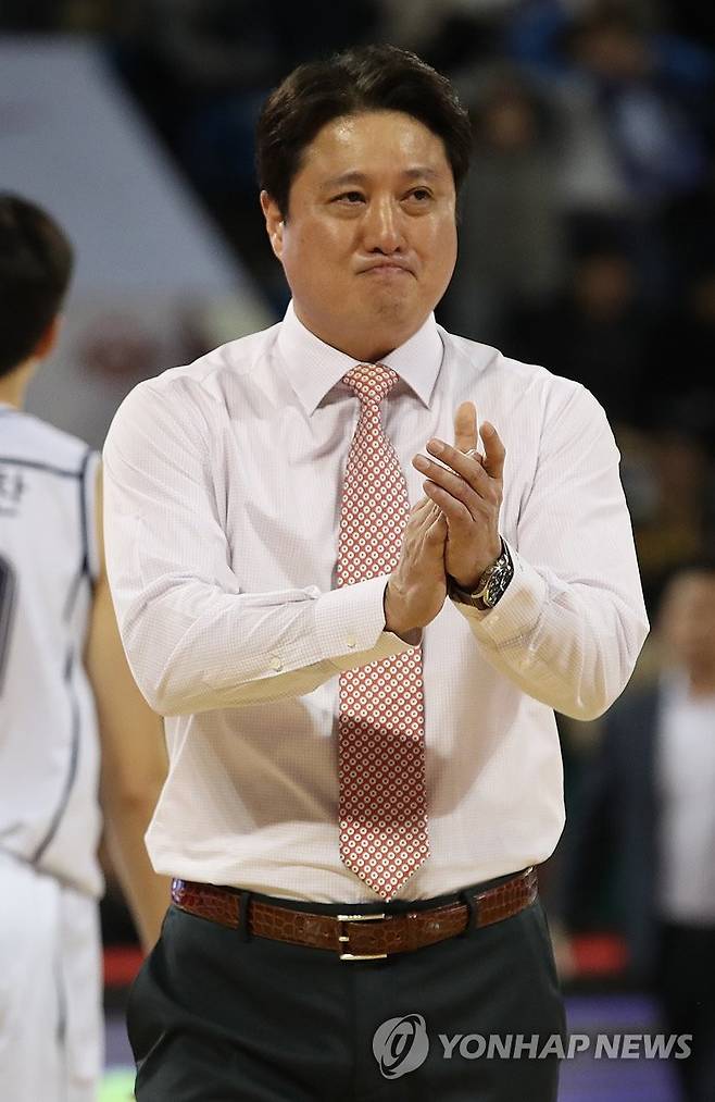 사진은 2019년 11월 10일 서울 송파구 잠실학생체육관에서 열린 2019-2020 현대모비스 프로농구 정규리그 서울 SK와 전주 KCC의 경기에서 박수치는 당시 SK 문 감독. 2025.5.23 [연합뉴스 자료사진]