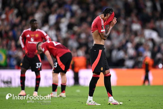 맨유는 22일 오전 4시(한국시간) 스페인 빌바오에 위치한 산 마메스에서 열린 2024-25시즌 유럽축구연맹(UEFA) 유로파리그(UEL) 결승전에서 토트넘에 0-1로 패배하며 우승에 실패했다.