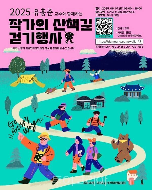 걷기행사 참가 신청은 서귀포문화예술포털 내 '작가의 산책길'홈페이지와 서귀포시 홈페이지에서 하거나, 포스터와 리플릿의 QR코드를 통해 접속해 사전 신청할 수 있다.사전신청이 마감된 이후에도 당일 현장 접수를 통해 행사에 참여 할 수 있다.