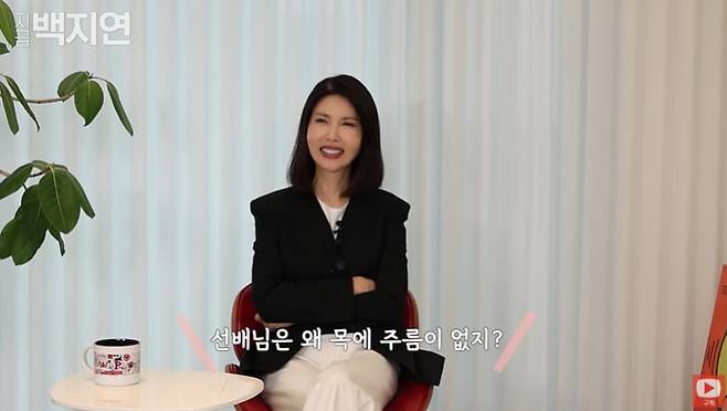 그는 자신의 유튜브 '지금백지연'을 통해 목주름 관리법도 공개했다.