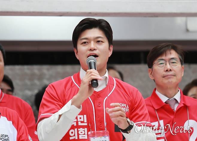김 비대위원장에 앞서 유세차에 오른 국민의힘 부산선대위 인사들도 비슷한 연설 기조를 이어갔다. GTX, 판교 테크노밸리 등을 이룬 후보라며 성과를 강조하다 보니 급기야 '영도력' '지도력' 단어도 나왔다.
