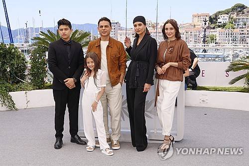 Sinan Mohebi, from back left, Payman Maadi, director Saeed Roustayi, Parinaz Izadyar, Soha Niasti and Arshida Dorostkar, front, pose for photographers at the photo call for the film 'Woman and Child' at the 78th international film festival, Cannes, southern France, Friday, May 23, 2025. (Photo by Joel C Ryan/Invision/AP) 051325131667