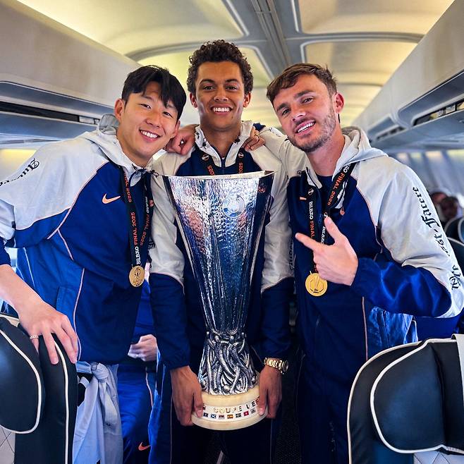 손흥민은 뒤늦게 전달받은 메달임에도 밝게 웃으며 런던행 비행기에 올랐다. 토트넘이 사회관계망서비스(SNS)를 통해 공유한 사진엔 우승 트로피와 함께 메달을 차고 있는 손흥민의 모습을 볼 수 있었다.