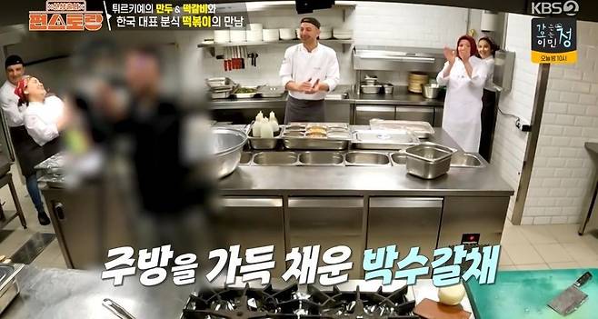 셔누의 활약으로 겉바속촉 만티가 완성됐다. 이어 이연복 셰프는 한국에서 직접 챙겨 온 떡볶이용 철판까지 꺼내 모두를 놀라게 했다. 그는 소 사골 육수를 이용해 양념을 만들었다. 그러나 이를 맛본 시넴 셰프는 "색다른 맛이다"라며 "별로 맵지 않다"라고 말해 이연복 셰프를 당황하게 했다. 이연복 셰프는 "더 맵게 해도 되나?"라며 신나게 고추장을 더 넣었고, 이번에는 시넴 셰프가 당황스러운 얼굴을 해 웃음을 자아냈다.