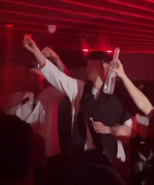 23일 SNS를 통해 공개된 토트넘의 축하 파티 영상 속에서, 매디슨은 술기운이 오른 채 잔을 들고 손흥민과 함께 선수들 앞에 서서 외쳤다.