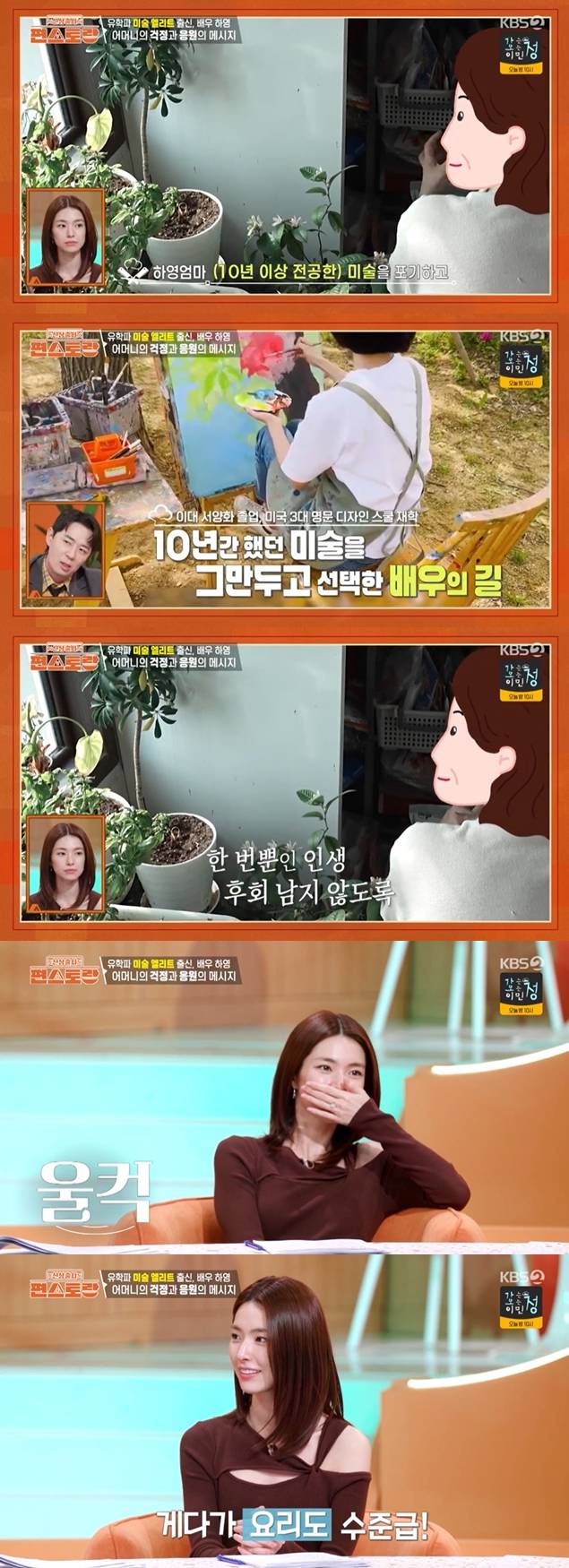 하영의 어머니는 "우리 하영이가 (10년 이상 전공한) 미술을 포기하고, 배우의 길로 갈 때 굉장히 집안에서 반대도 있었다"라고 털어놨다.
